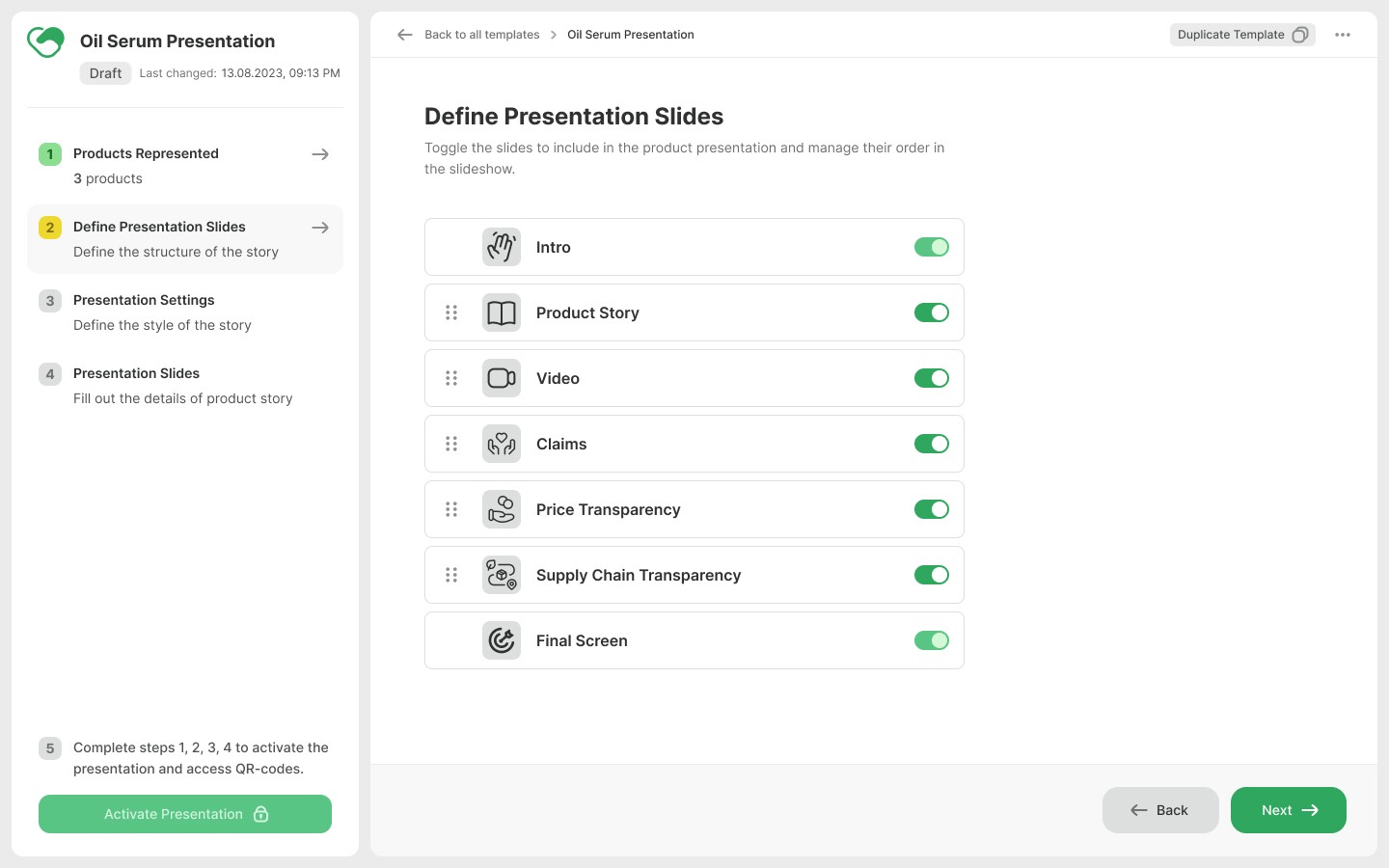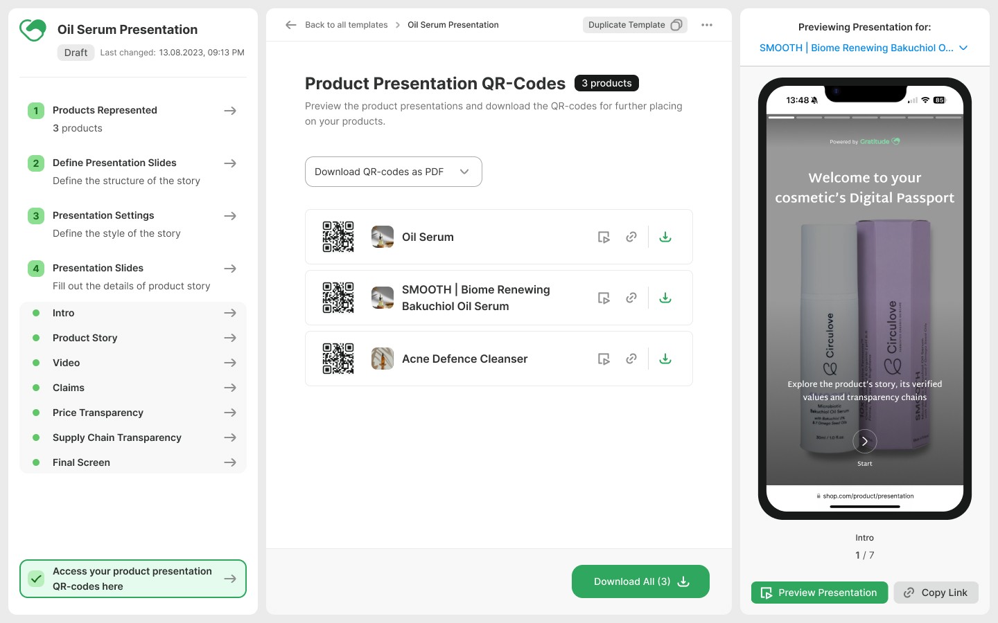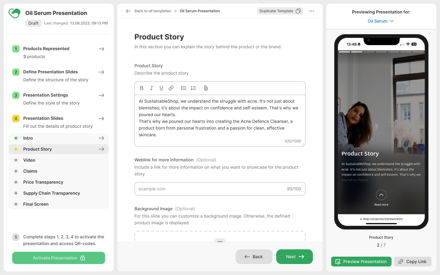 Presentations have the room for new future features such as life-cycle assessment, product care tips, or related product highlights, as well as more visual customisation.